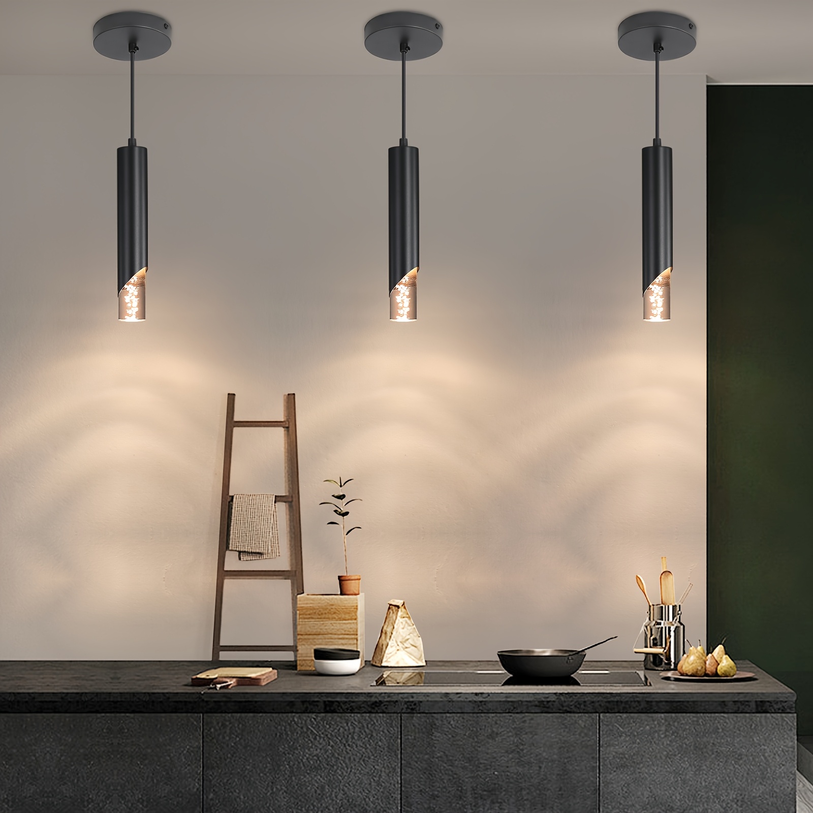 [Modern Minimalist Design & High Performance] Elevate your kitchen island, dining room, or living space with this sleek, black pendant island light. Combining modern aesthetics and industrial charm, it's crafted from durable aluminum and metal tubes with a high-transmittance acrylic lampshade. The minimalist design complements any decor, providing a stylish, high-end look. Perfect for modern kitchens, dining areas, and living rooms, offering long-lasting beauty and functionality.