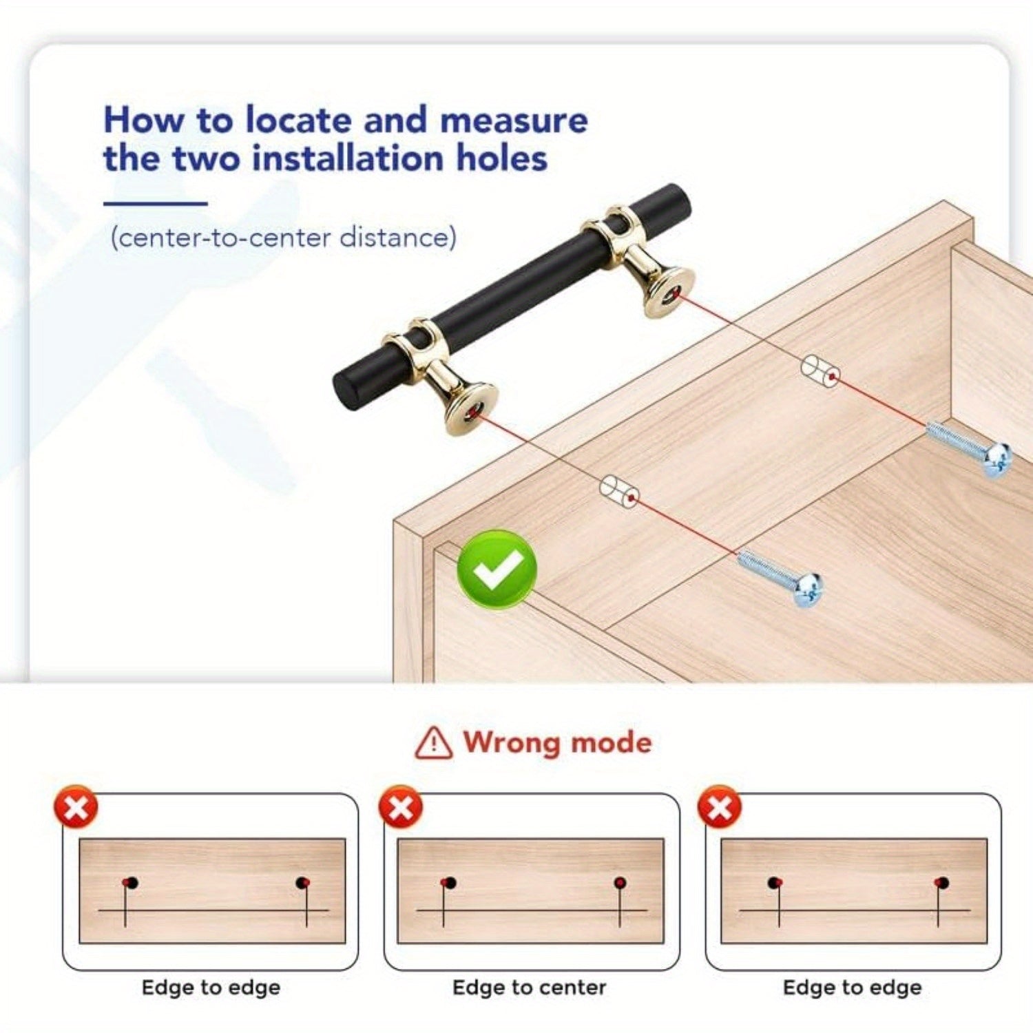 Measurements: Total Length: 6 inches (152MM); Center Hole Distance: 3-3/4 inches (96MM); Width: 1/2 inch (13MM); Extension: 1-3/8 inches (35MM). Compatible with most cabinets, but verify that the spacing of the existing holes (from center to center) in the cabinet doors and drawers is 3-3/4 inches.