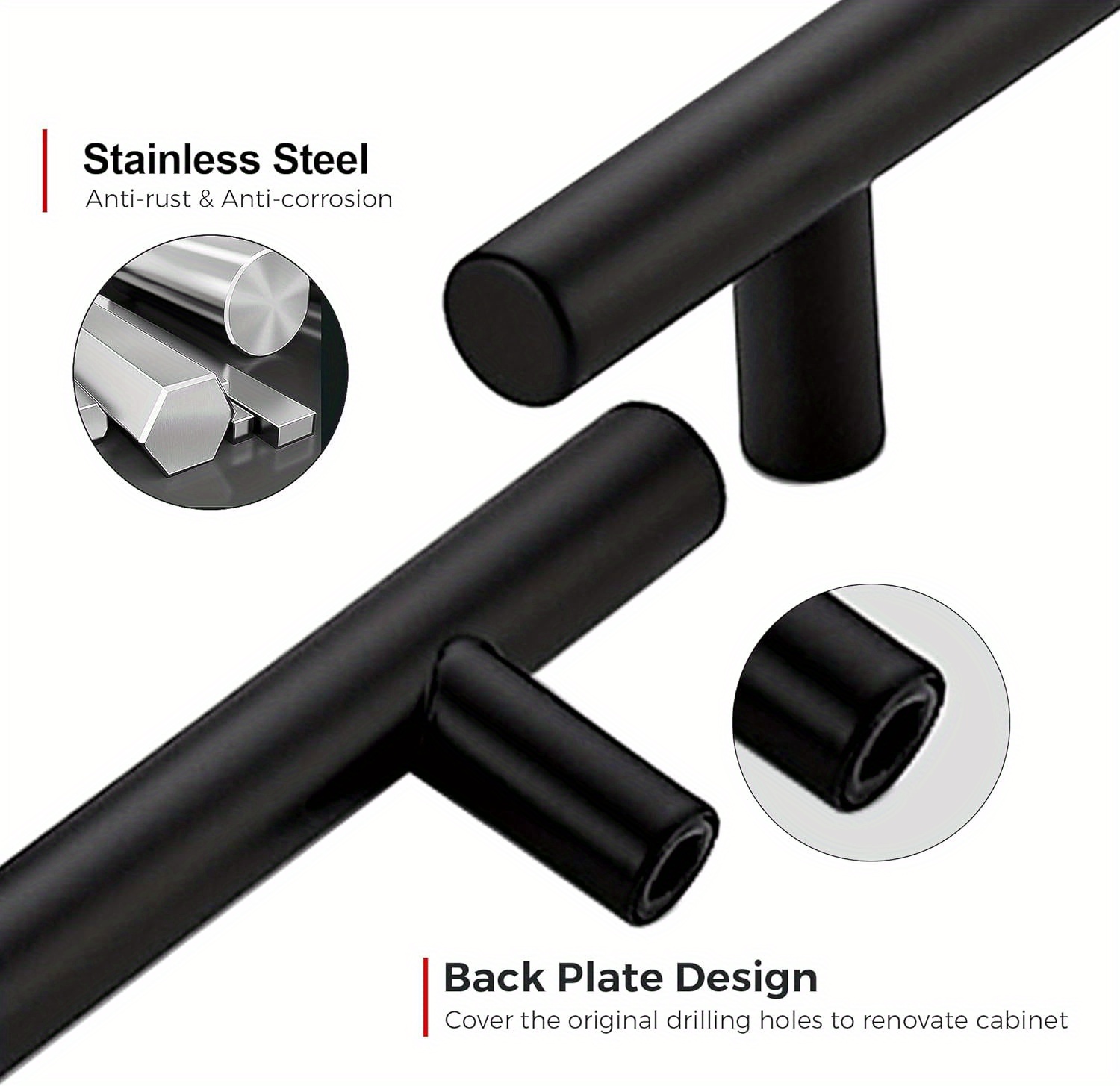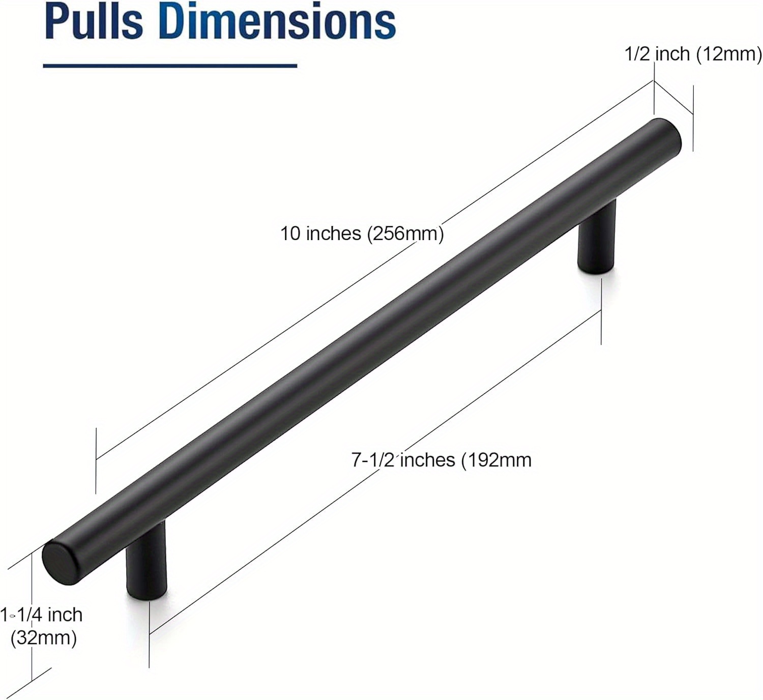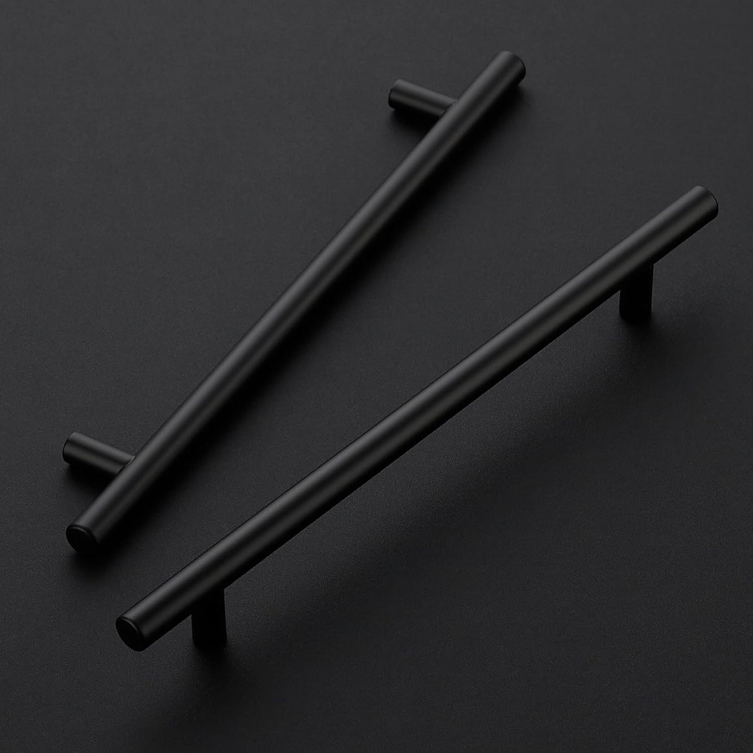 25/50 Pack Matte Black Stainless Steel Cabinet Pulls 7-3/8 Inch with 5 Inch Hole Center (128mm) - Modern Sleek Design Kitchen Hardware for Cabinets & Cupboards, Includes Mounting Screws, Kitchen Handles for Cabinets, Minimali