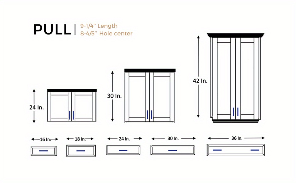 If you're replacing your handle, measure and ensure the center to center hole spacing of the current handle is 8-4/5 inches(224mm) Installing new cabinet handles, drill two holes with center to center spacing of 8-4/5 inches(224mm)