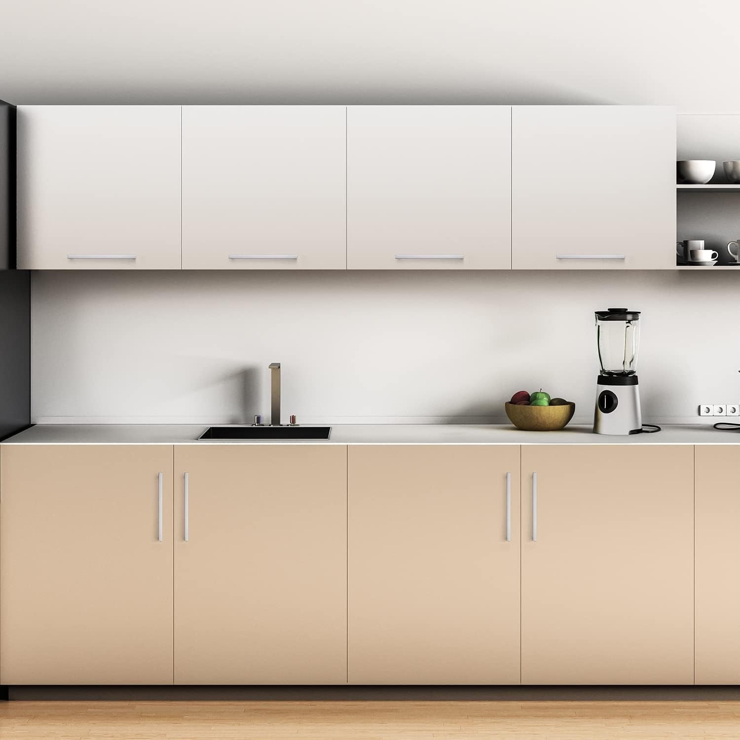 Simple look: The Brushed Nickel cabinet handles have a wide appeal across a range of kitchen cabinet doors and drawers The Satin Nickel handles have a clean and timeless look that works with farmhouse, vintage, traditional and transitional styles