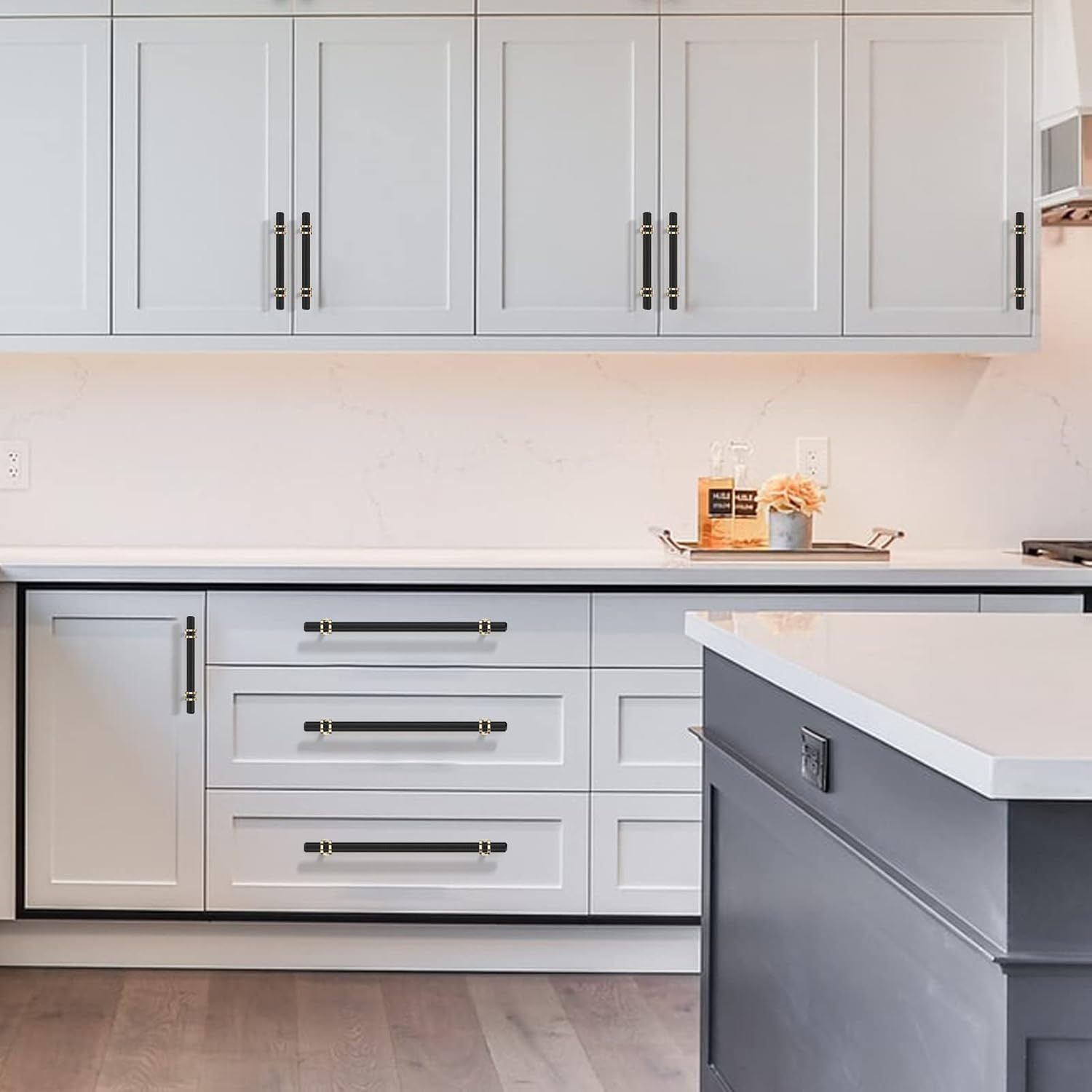 5 Pack/ Black&Golden Cabinet Pulls, 2 Tone Cabinet Handles Drawer Pulls, Kitchen Cabinet Handles, 5-inch (128mm) Hole Center Spacing Solid Dresser Pulls Hardware