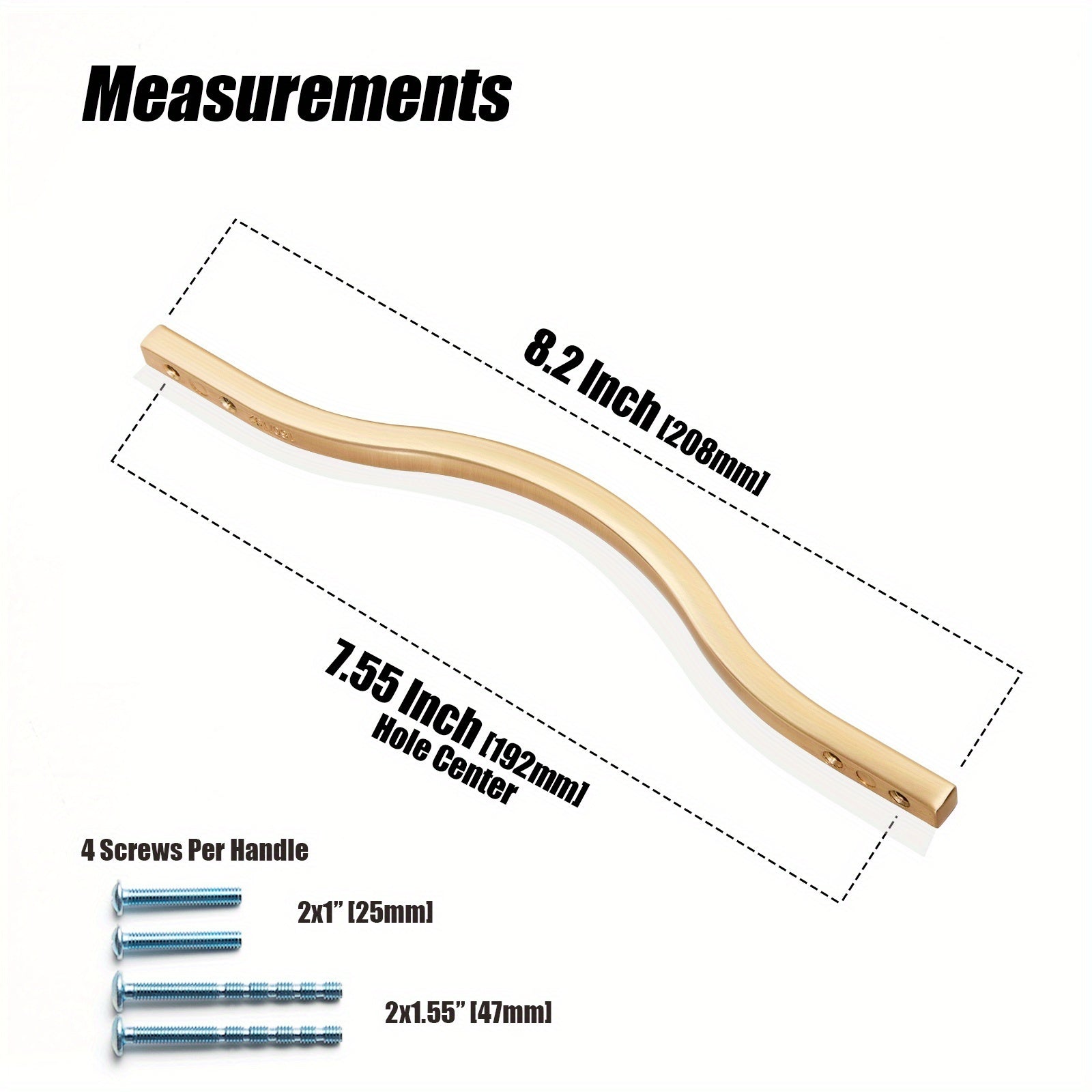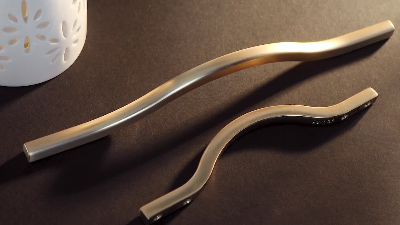 6pcs, Low Profile Light Brushed Brass Cabinet Pulls, Double Hole Centers (6.3''/7.6'') Zinc Alloy Handle For Drawer Cupboard Wardrobe