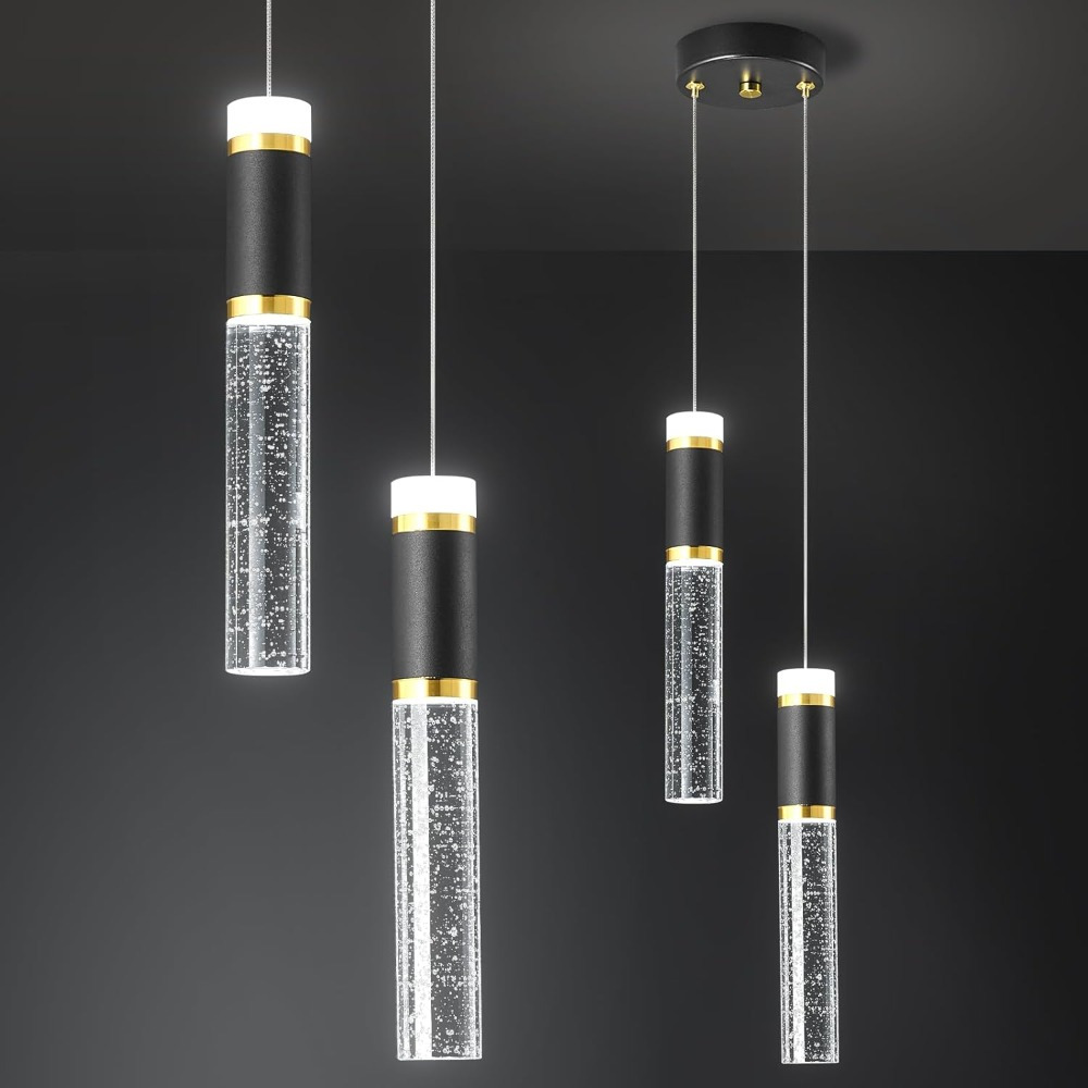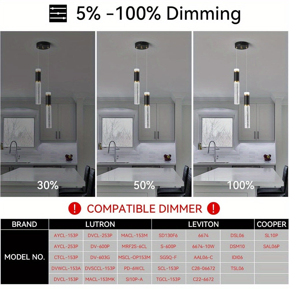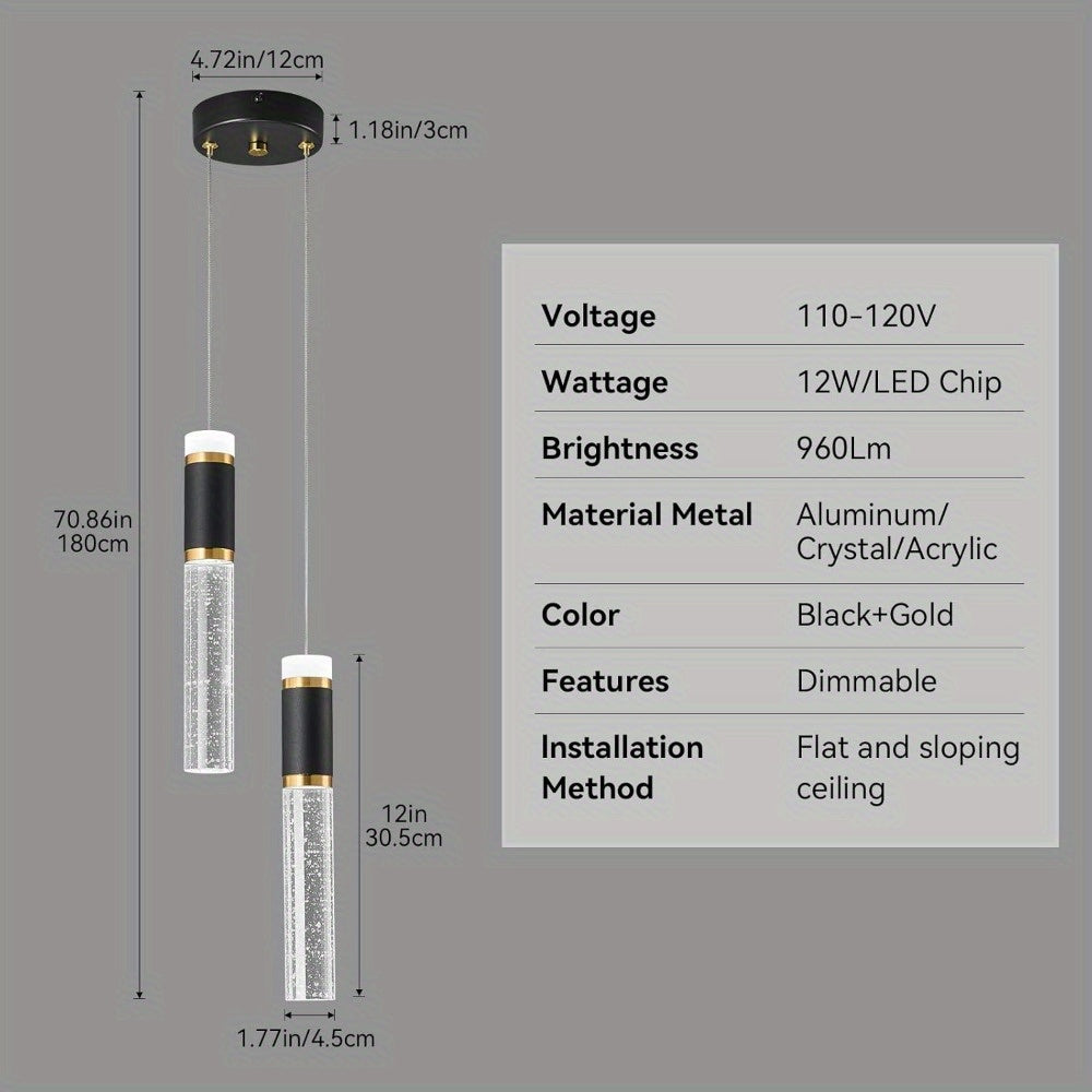 Kitchen Island Small Pendant Lights, Dimmable LED Hanging Light with Bubble Crystal Pendant Light Modern Mini Pendant Light 2-Light Pendant Lights